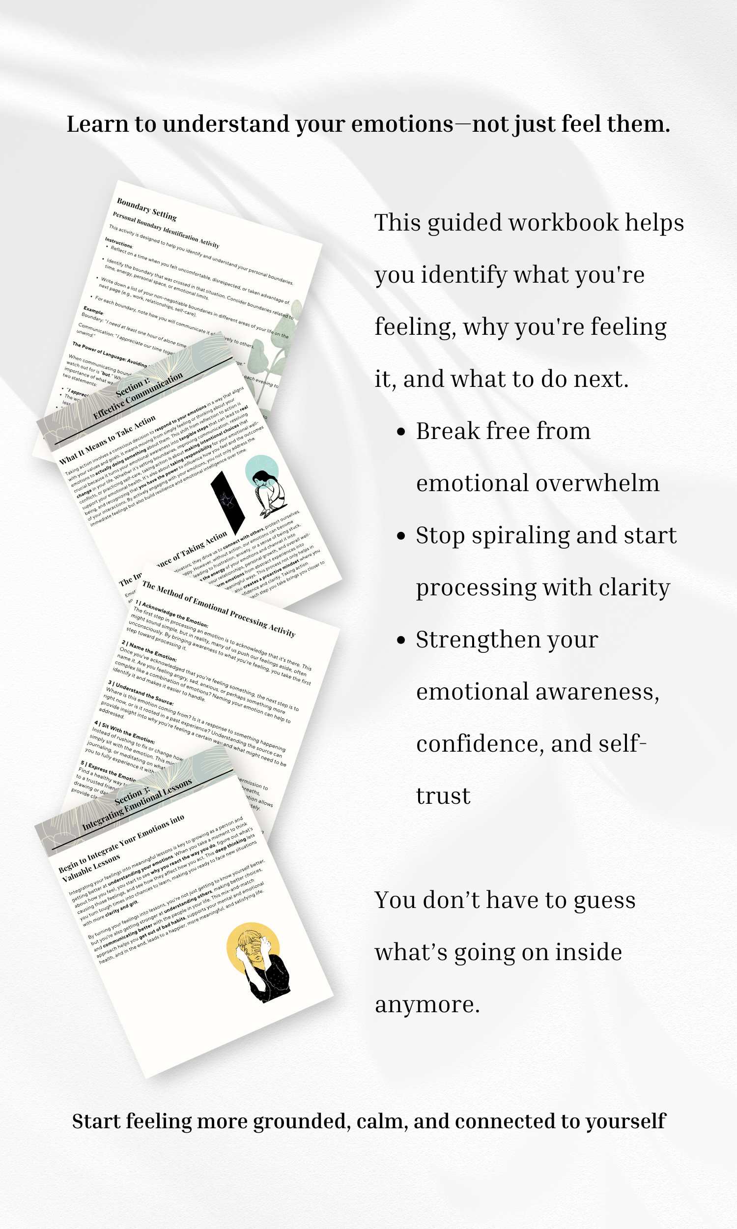 Categories: Select a Category All Intentional Living Self-Care Practices Mental Wellness & Mindset Productivity & Goal-Setting Flashcards Coping T-Shirts Mental Wellness & Mindset All Intentional Living Self-Care Practices Mental Wellness & Mindset Productivity & Goal-Setting Flashcards Coping T-Shirts Emotion Tracker & Reflection Journal $6.45 Add To Cart Added! How to Identify and Process Your Emotions Workbook Sale Price: $5.45 Original Price: $13.75 Sale Add To Cart Added!